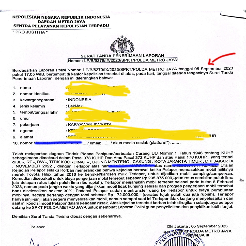 - Tanggal 10 Oktober 2024, akhirnya Pihak Kepolisian Polres Depok, mencoba mempertemukan saya dengan pihak Impro, adakan Mediasi untuk mendengar pernyataan kedua belah pihak. Buat saya pertemuan dengan salah satu Direktur Impro ini, belum menemukan kesepakatan penyelesaian. Ya..Benar Impro mengakui kesalahan dalam mensupervisi pekerjaan Toyota hilux saya, memilih rekanan yang salah dalam mengerjakan. Diakui semuanya. Tapi tidak bersedia memberikan sisa ganti rugi yang saya minta. Katanya semua sudah hancur dan minus. Katanya Impro sudah bangkrut. Nasi sudah menjadi bubur.